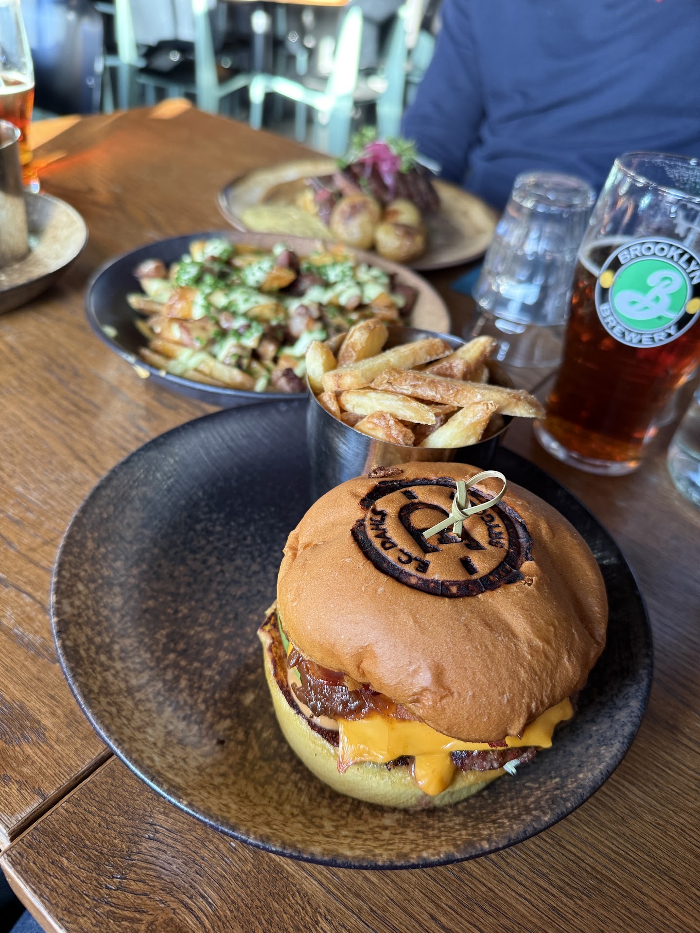 The food, however, was subpar at best. I ordered poutine which says it has pulled pork. What I received were undercooked fries with cubes of what tasted like your standard Scandinavian roast pork. There should be cheese curds of some kind with poutine and there were none. There was a mornay sauce that was mediocre. The fries were undersalted as well. The burgers my companions got look good.