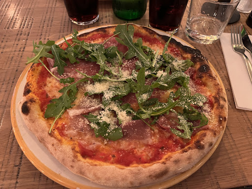 Pros. The entrance in the restaurant is amazing… this guys grow their own GREENS (basil, rosemary etc). If that’s not fresh, I don’t know what is. Big thumbs up for this amazing idea. All restaurant should have it. The staff(waiters, bartender, chefs) looked like they knew what they were doing. Italian waiter was smiling and being professional at all times. The design of the bar was original… the marble and metallic finish looked great. The beer dispenser placement was amazing… just wow… if somebody is curious about it hm…they should check the restaurant in person… totally worth it. Some people would use the term ‘’business card’’ to describe the bathroom of a restaurant… so the bathroom here was spotless and very chic We ordered pizza prosciutto e fungi. It was so tasty, fresh and the dough was perfect. I ordered a Negroni cocktail. Almost balanced. Crisp. 8/10