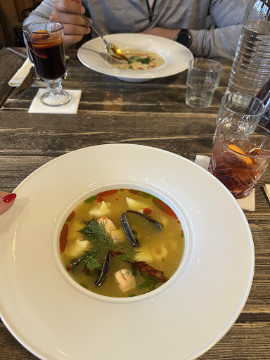 Our dinner was so outstanding we returned for lunch the next day after our golf round at Lofoten Links. We had the burger and the fish stew and both were phenomenal. It's worth booking this place in advance as it sounds they are very busy in high season (understandably so!) and they are the only restaurant like this in the area. We'll think about this restaurant for a long...