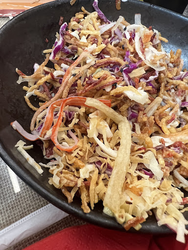 Read moreWe were two people we ordered the following crab salad, combo appetizer, pepper burger, cheese fries and blue heaven. The crab salad honesty tasted like cheap crisps from a local supermarket nothing was salady about the salad they only decorated it with purple cabbage, also too much sauce and most ingredients were fried. Next, the combo appetizers were okayish nothing special, I liked the shrimp however the chicken smells. The pepper burger was nice it has fried jalapeños I think which intensified the spice, the bread and cheese was good and the burger was cooked nicely. I also enjoyed the fries but the proportion was too little compared to the price. Lastly the drink literally tastes like pure syrup 2 of us couldn’t finish it due to the insane sweetness of it. The menu they gave us had only pictures which was very annoying cuz we had to ask about the ingredients of each dish we were about to order. Also, the staff was handling our food with no gloves and they kept going to the front stall and touching iPads and coming back to us to hand over our food WITHOUT WASHING THEIR HANDS. Overall, a mid experience that I would...