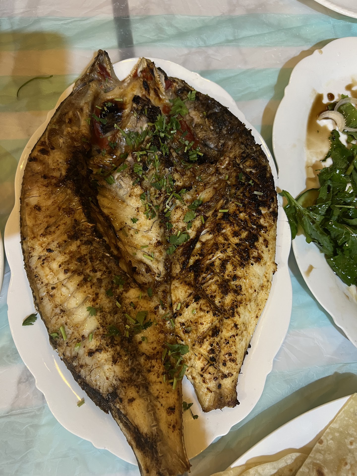 What can I say about the best Fish and Seafood I had in Muscat? Fish and Seafood Grills Mutrah is such a great experience! Me and my friend we were searching for a nice place to eat Fresh Fish and seafood and I’m so glad we’ve found this cozy restaurant! The food and drinks were very delicious! I highly recommend it, if you go to Muscat and if you’re searching for a delicious restaurant, you definitely should go to Fish and Seafood Grills Mutrah! Don’t miss it! Visit Mutrah Corniche and Mutrah Souq and go there! The staff was kind and always willing to help. The food was on another level! We had salad, hummus, fish, seafood, shrimp, calamari, squid and bread, everything was just so perfect! I definitely want to come back and I...