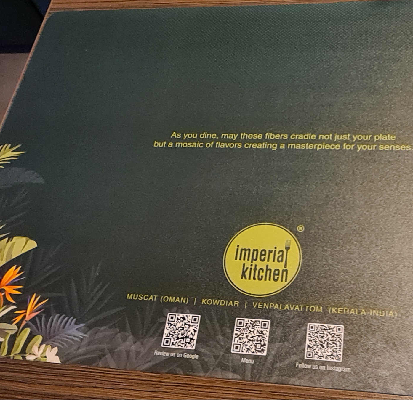 Read moreWhat do you look for in restaurant? The IMPERIAL KITCHEN (Behind Zawawi Mosque, left from Red Tag on HSBC service road) was first experienced by us in Trivandrum and now it has come to Muscat!!!! The best part of IMPERIAL KITCHEN is that they have the right of Restaurant Ambassadors, Service champions serving relentlessly their valued customers. One of the most well behaved Managers, Food servers and the employees and their positive behaviors, speaks a lot about the owners and their overall training! I happen to be at the Imperial Kitchen multiple times and often returned to the restaurant only due to their warm behavior, high-quality food and customized serving. Each of our friends loved the food and it is only because the food quality and taste is amazing. We tried on various occasions, Burnt garlic Checken rice, Kerala style chicken, mutton kebabs, Methi chicken, Oriental chicken with gravy, Monchow soup, and many other dishes et all Every time the food has been amazing and above guest expectations!! Over and above, the best part is their Manager Mr Dipu, Sarang and Sabir the server!! They are so so warm and amazing while receiving us and looking after all of us throughout the evening. It is the experience, the food and the warmth shared by them backed with super food. This is what will bring you here again and again On an overall basis, Imperial Kitchen Muscat, is a great place and a change to the people of Muscat Surely visit it and enjoy your evening over good food. We surely recommend it and do try the same. Alok R...