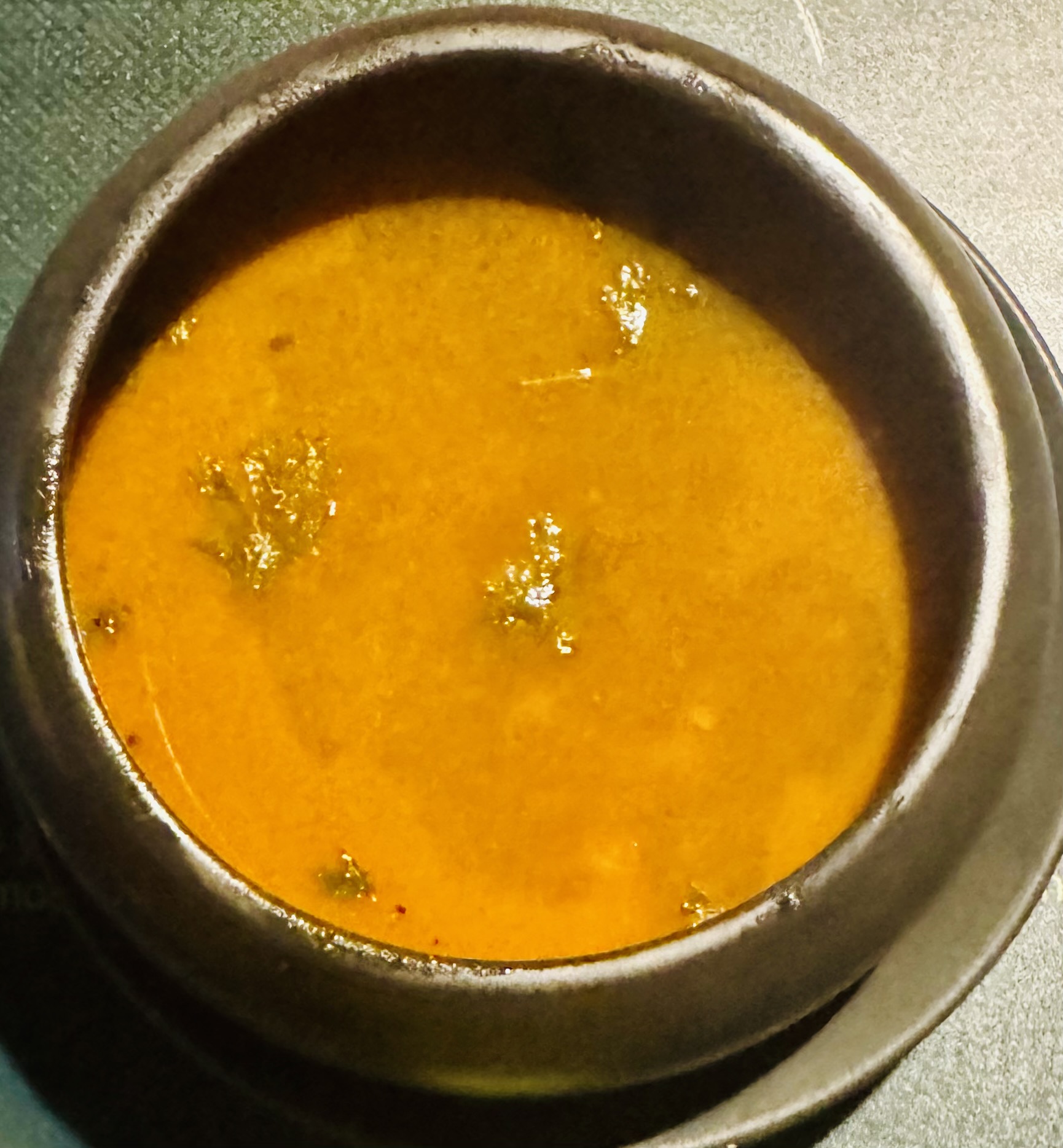 From the soup section, I ordered the “Kozhi Kurumulaku Rasam.” It was a truly authentic Kerala-style pepper rasam, but with a twist—tender chicken added in. It was both delicious and healthful!
