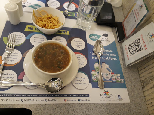Read moreOne of the best all/pure vegetarian dining of Muscat. They offer wide range of Indian veg food. Starting from famous Indian Street Chaat they serve authentic roadside shop style Seve puri and dahi bhala. Golgappa are also good. It's like a ritual for me and my husband that we always start with sev puri at Kamat. The hospitality is good. Family friendly environment.The service is quick. Both north and south Indian food is appropriately cooked ,well spiced and flavourful. But the sambhar they serve is little gujrati style with tones of sweetness. You can give a good Indian style start of the weekend morning with their delicious,mouth watering poori bhaaji. If you're a fan of typical veg Indian-Chinese food then you shouldn't miss on their Paneer sizzler in szcheuan sauce and spicy veggie fingers. Jalzeera soda is also good. If your are a indian thali fan, then for lunch give try of the North...