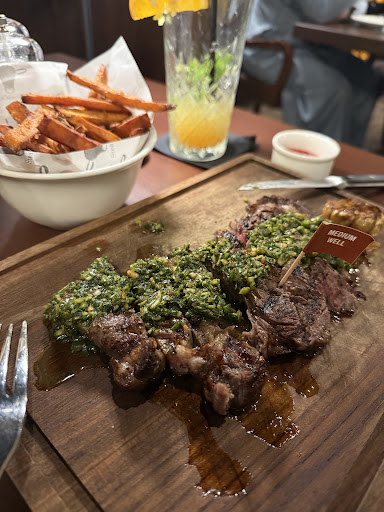 Read moreOne of the best steak places in town. We booked the place for a family gathering of around 5 adults and three children. Of course the place was crowded since it was a Thursday. We ordered almost all variety of steaks, filet mignon, T-bone, rib eye, etc. The steaks were cooked to perfection and the supporting sauces were spot on. Even the sautéed vegetables were appetizing. The garlic bread, was one of the best I've ever had. The only gripe would be that there are not enough selections of chicken, assuming that you go with someone who's not a meat fan. Secondly I understand that they are purists in terms of cooking their steaks, but I requested for an egg sunny side up with the steak, which was refused point blank :) . Also I believe they need to provide mustard as part of the condiments, although their in house prepared sauces, especially the mushroom pepper and spicy sauces, were more than palatable. We also ordered one portion of the piri piri chicken which was a bit dry and not tender. The drinks ordered were Strawberry Mojitos and Cherry Cola, which were...