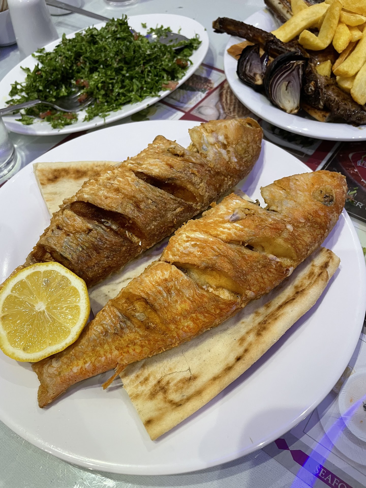 Read moreThere are very few restaurant which master to provide outstanding fish and meat dishes at the same time, combined with great siders and good service. The Turkish House in Muscat provides all that. Starting with some appetizers, the restaurant provides an outstanding baba ganoush, which I haven’t had in such a combination. The spicyness and the tomato-aspects of the mousse were outstanding. Tabouleh is also something you should try, as it tastes perfectly, with the right amount of lemon. Lastly, the bread. How can I describe this bread. Soft, tasty, warm, just sensational really. It fits perfectly with anything you order, no matter if it’s a dip for the baba ganoush, or the sauce of your piece of meat. As main dishes we had fried fish (Sultan Ibrahim), fried calamari rings, and lamb chops. Wow. Calamari rings were on point, as well as the fried fish. Perfectly cooked. The lamb chops were wonderfully grilled, with a tasty note around the bone, but soft when it comes to the meat. As desert we had Kanufa with tea, which was the perfect ending of the feast. I cannot remember being so full after dinner, but also can’t remember when I was eating so good the last time. One tip also: juices are really good. I had the special house juice (mango) and it was so creamy I can’t forget it! Prices are fair, even if they look high on the first look. The portions are HUGE, and taste and quality are exceptional, and that’s what you pay for. Service, as mentioned, really friendly!...