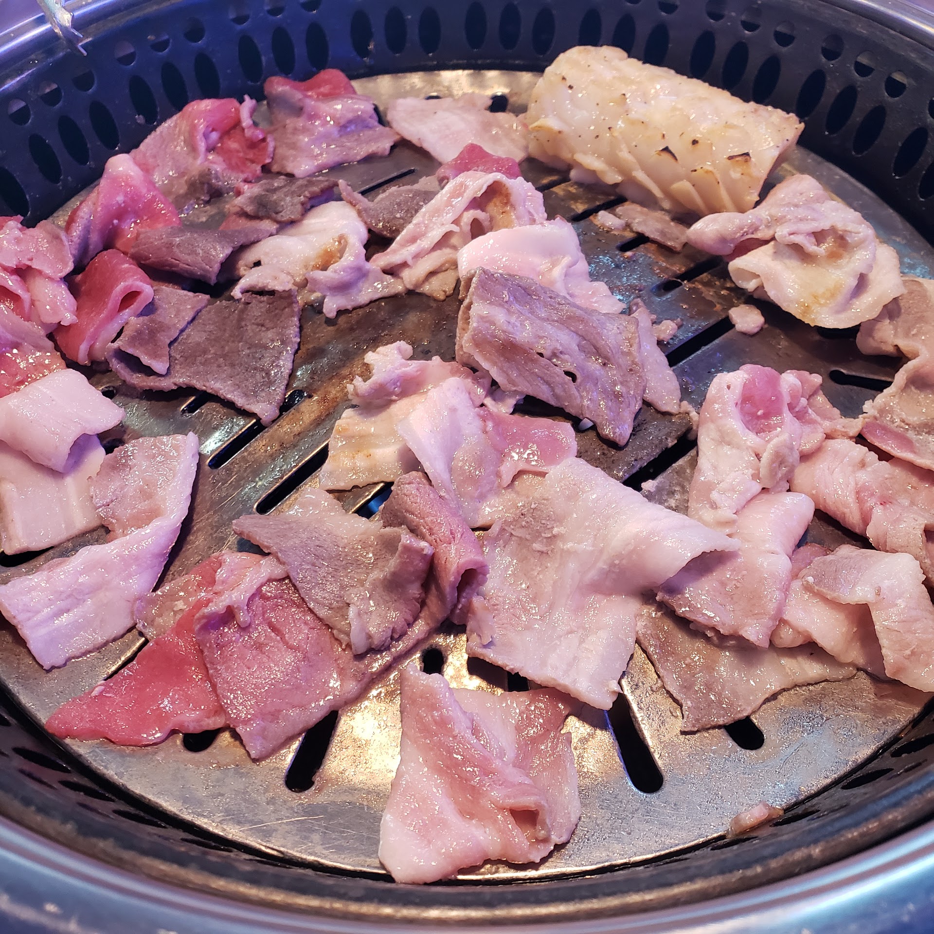 The don't have as many options though (for lunch or dinner), besides basic meats you have a few spicy & garlic options. If you're looking for a variety of flavors, meat that has been marinating to get that yumminess... this may not be the best choice for you. Don't get me wrong, it was still good but more selections would have been nice. My bro said the squid was really good. I did like that the sausage was almost comparable to little smokie links, they weren't super salty either. I'd recommend the thin slices of pork belly, whatever their sauces were... sesame oil (I think) & some red sauce, were delicious. It had a bit of heat to it but that's what really added flavor.