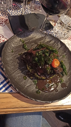 Read moreAbbiamo passato una gradevolissima serata infrasettimanale, una cena di lavoro. Locale non molto grande , ma nel compenso giovanile, accogliente e ben gestit. Personale molto attento, presente, ordinato e discreto. Da subito il titolare, ci ha accolto facendo gli onori di casa, deliziandoci con aperitivo e prosecco, per poi passare ad una ricca selezione di antipasti di eccellente manifattura. Carciofi, polpette, tartare, prosciutto crudo e altro. Qualcuno di noi ha optato per i primi altri per i secondi. Delizioso l'hamburger di baccalà (in crosta) ma la guancia di bue molto particolare. Ottimi vini. Stranamente nessuno ha preso il dolce, ma non mancherà certo l'occasione per testarli. L'unico neo è il parcheggio, ma con un po' di fortuna lo si riesce a trovare, male che va c'è una fantastica seconda o terza fila davanti al locale (ben tollerata). Sicuramente ci...
