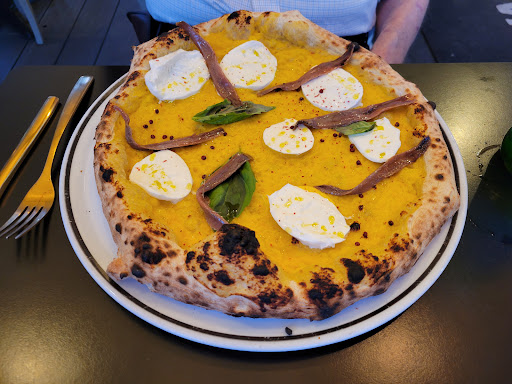 Amazing modern pizza with many unique and traditional options. We got the most interesting one, the yellow tomato and anchovy with peppercorn. Very different from any other pizza I've tried - a distinct bitterness from the yellow tomatoes and briny taste of the anchovies were brought together with the sharp, slightly burnt peppercorn and Himalayan pink sea salt. It was a bit overwhelming at times so it's recommended to share with a less daring pizza. We also got the spicy 'njuda pizza, which brought the heat. Tomato sauce and crust were fantastic, but the pizza could be a bit greasy because 'njuda can get liquidy easily.