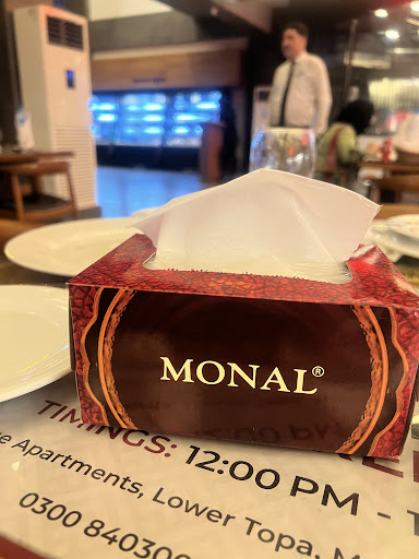Read moreStopped at Monal Fusion Bhera during a mid-travel break from Lahore to Islamabad, and it was absolutely worth it. As soon as you step inside, youâre greeted by the warm and inviting ambiance that perfectly reflects Monalâs signature style â elegant, spacious, and thoughtfully designed to make guests feel comfortable. The atmosphere strikes a fine balance between luxury and relaxation, making it ideal for both families and travelers on the go.