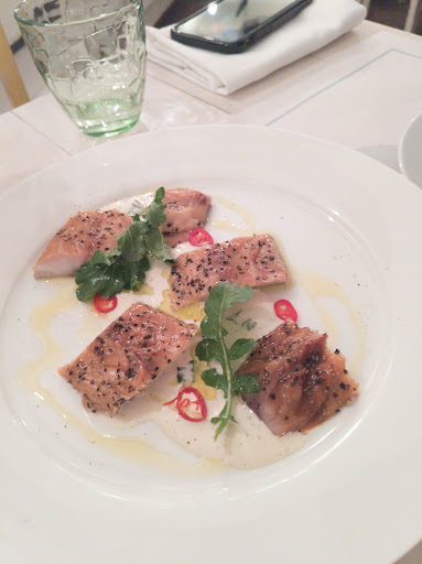 Starters were incredible. We ordered numerous dishes and really no matter what you go with, you'll be hard pressed not to enjoy the food because it is really well prepared. I had the salmon pouches, the goat cheese and fresh fig salad, the buffalo mozzarella, the smoked mackerel, the crab salad and the portobello mushrooms. I really recommend all of them but the mushrooms and the smoked mackerel are a must try.
