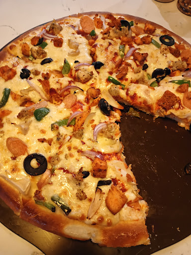 Read moreThis Pizza max’s location is great. Parking is easily available there. The restaurant itself has a good ambiance and the staff is quite friendly. However, food is the main concern for a foody person like me. We ordered their deal which served 3 people which included 1 large pizza and one pitcher. Though the size of pizza was good enough to fill the appetite of 3 people but the taste was the main concern. For some reason it felt like they cheated a little while making the pizza. The species dint felt mouthwatering and the amount of cheese was little than it should be in normal. Next we ordered 1 platter which was of Rs.399. Which I must mention was a mistake. The platter just had 4 chicken nuggets, 2 garlic breads and 2 tiny chicken wings. And all of which was served cold. Frankly The platter looked quite empty and the taste of nuggets and wings was again not very impressive. They served us after 30 mins though we din’t really visit at the rush hour. So you can imagine what would be the condition at peak hours. However, on a positive note the place itself was really peaceful and compared to other pizza franchises the price was reasonable except for the platter which I felt was overly prices. Also you might have to compromise a little...