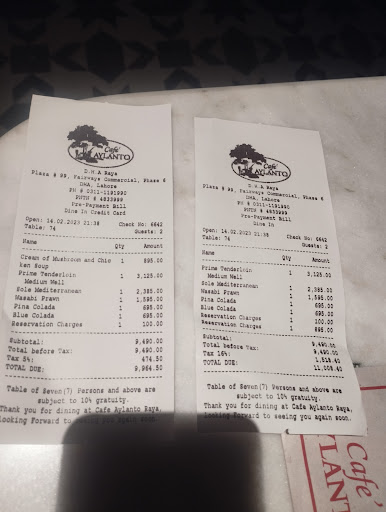 Café Aylanto has steadily become one of my favorite go-to spots for fine dining. The ambiance is warm, cozy, and inviting, ideal for long, relaxed conversations. The staff is another highlight: well-trained, professional, and consistently attentive, which elevates the entire dining experience.