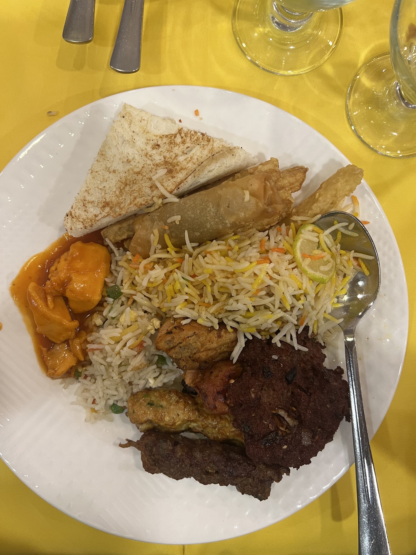The buffet includes a wide range of traditional Pakistani dishes, from savory BBQ items like beef kebabs and mutton champ Taka Tak to rich curries and freshly baked bread. Breakfast favorites such as fluffy omelets, halwa puri, and a selection of chutneys add to the variety. For those with a sweet tooth, the dessert section features treats like suji halwa and other delightful confections.