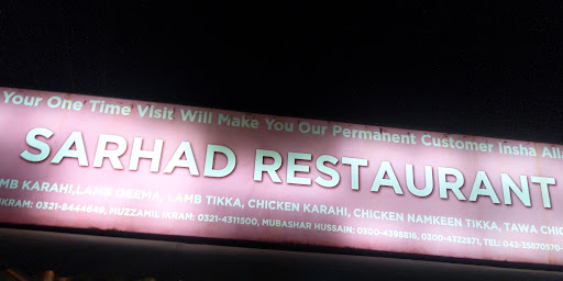 For any Carnivorous food adventurer the quest for ultimate meat grind between teeth can either be only found in three nations: 1. Pashtoons. 2. Turks. 3. Brazilians.... After stating these strong words I must confide with the the readers that this is purely my brothers and my own experience after visiting +44 Countries. The best meat experience in Pakistan is definitely either in Namak Mandi or in LandiKotal, both being in KPK, formerly known as NWFP. Now for somebody who can't travel to KPK that frequently and either resides in Lahore or is posted here, maybe even stuck here, can have the best if meat experience in SARHAD RESTAURANT. Us Karachiwala mixbreeds really love Lamb meat and Fat. We are very particular about certain tastes and their authenticity. SARHAD provided all. The Aurora and ambiance was very particular of a rough and tough PESHAWARI/KPK sitting GOLL KAMRAs. The Lamb was a WoW factor, the BBQ LUM aka Tail Fat was heavenly. The best part is they knew how to cook authentic KARHAIs and BBQs. A true Karhai is only cooked with Fat, Meat, and Salt. That's it!!! Nothing else!!! And they got it right the very first time without even explaining them how to do it. Usually Lahoris have no clue or Idea to make authentic Karhais-Here a lot of Spices, Greens, Tomato, Yoghurt, and Creams are added, which is quite nice in it's own way, but definitely is not a Karhai. Ask any Pashtoon, Baloch, or any other Central Asian. But then, Hey!!! Each area has it's own palatable tastes. For us, in Karhai, authenticity matters, and that authenticity was provided by SARHAD. Way to go SARHAD guys, keep it up. I'll be visiting ya'll again, INSHALLAH, very soon!!! LIVE LONG AND PROSPER WELL IN...