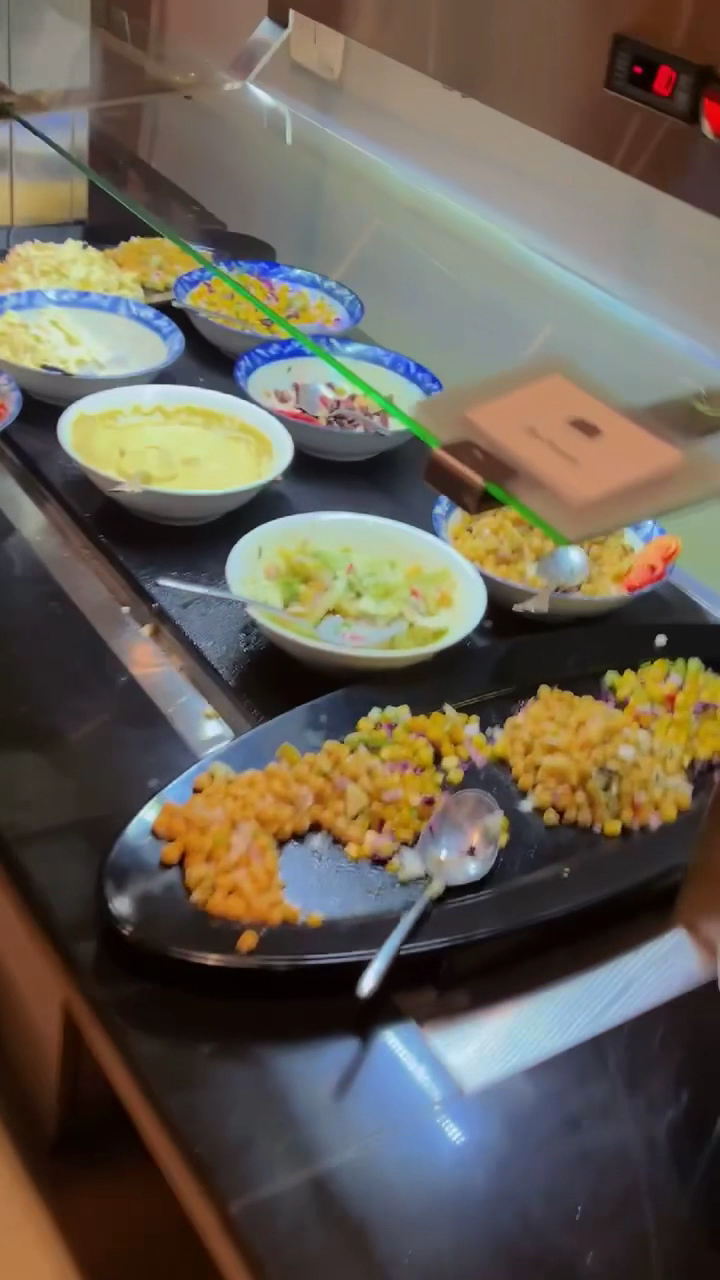 The had a super wide variety of things to offer from sushi to dumplings (which were slightly disappointing) to all kinds of Japanese/Chinese including delicious fried shrimp, Continental including deliciously juicy mediterranean chicken strips, rotisserie chicken with mashed potatoes, Moroccan and tarragon chicken, salads, sauces, desi including golgappy, freshly fried jalebis and this is just naming a few. Their menu is super varied and fresh so loved that! 8/10 for the food! You get served drinks of your choice and really good tea at the end. The desserts are amazing! Thereās a chocolate fountain and fresh crepes being made of your choice. The apple pie was divine š¤¤