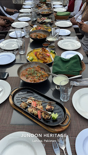 Read moreA few months ago, I visited Junoon Heritage with my friends around 4-5 PM, and it was an amazing experience. The moment we entered, we were impressed by the historical beauty of the place. Its traditional design and ambiance give a true Lahori heritage feel. We chose to sit on the rooftop, and that was the best decision. The view from there was absolutely stunningâthe majestic Badshahi Masjid standing tall in the golden evening light, with the lively streets of old Lahore below. The whole setting felt like stepping back in time while enjoying a modern dining experience. Now, coming to the foodâit was simply delicious! We ordered their Chicken Sajji, Chicken Karahi, Malai Boti, and Hyderabadi Biryani. Every dish was packed with flavor and cooked to perfection. The Chicken Sajji was juicy and well-marinated, while the Karahi had the perfect balance of spices. The Malai Boti was something unique and tasted amazing, and the Hyderabadi Biryani had rich flavors with just the right amount of spice. Everything was served fresh and hot, making the meal even more enjoyable. The service was great, with attentive staff and quick serving time. The prices are a bit high, but considering the ambiance, quality food, and breathtaking views, itâs totally worth it. If youâre looking for a place with delicious food, a historical atmosphere, and a stunning view of Badshahi Masjid in daylight, Junoon Heritage is a must-visit. Highly recommended for a memorable outing with...