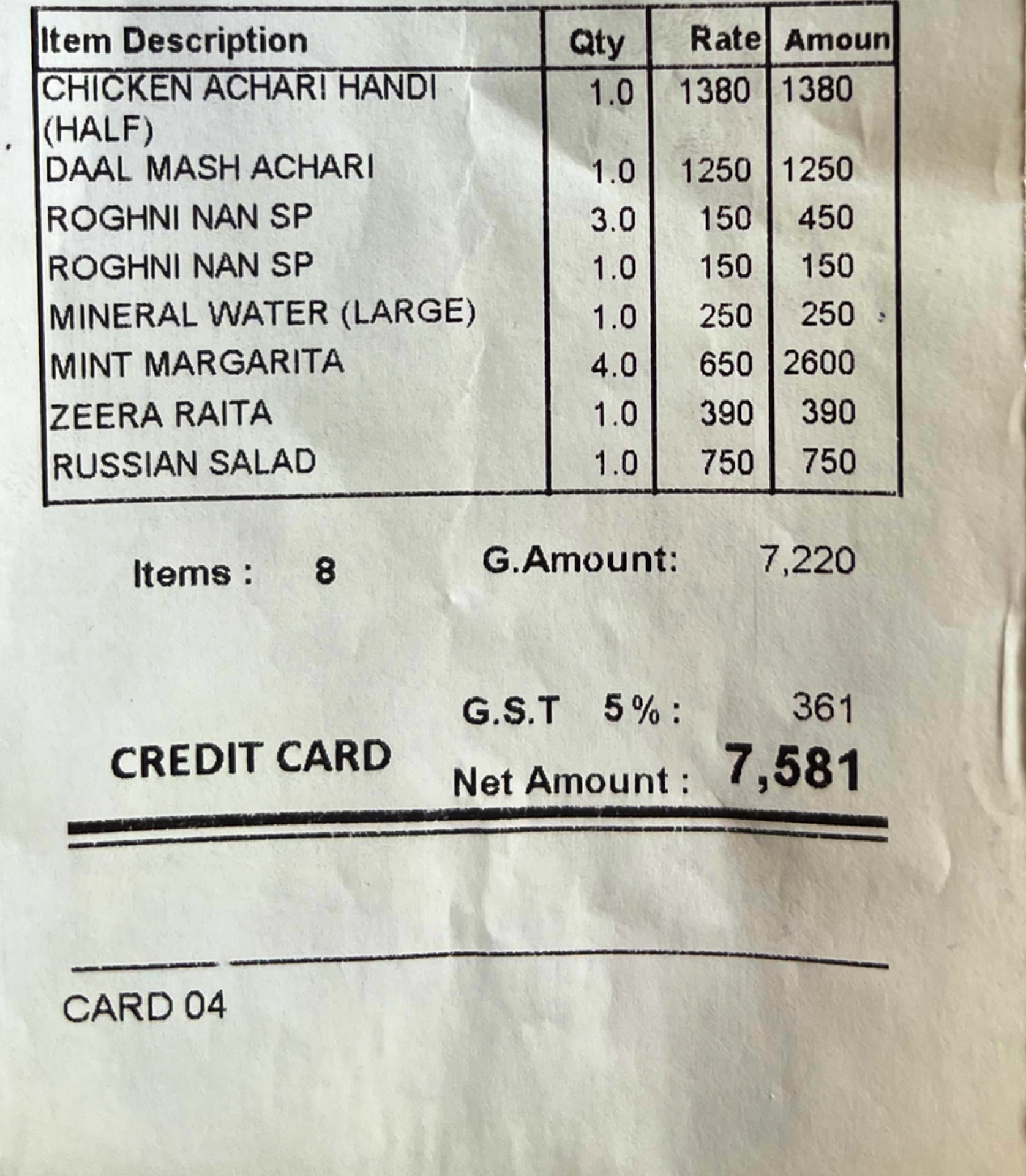 Read moreSuch a overrated place. Nothing special. Ordered a achari handi and achari daal. The sum of 2 handia was less than 3k. And guess what the total bill was 7581. They dont have plain roti just to charge you extra for khamiri roti that was 150 each like it has some gold pieces in it. Mint margarita 650 each glass. Russian salad just a small plate filled with boiled potatoes with cream and a few apple pieces. After complaining they changed the plate adding some extra apple pieces. Zeera raita looked like a lassi raita. Rather than yogurt it had lassi with zeera. Ambience is good. Beautiful decoration but with very loud music. I mean its not a pub nor a club why u put so loud music. People go their to eat and have chit chat. Not to hear your pathetic playlist. While asking for the bill they added mineral water from their own without even being served. Made the correction after complaining. Such a horrible experience. The quality of food doesn’t match the prices they charge. So many better options available in the market. Not...