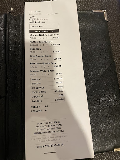 Diva Restaurant has set a new standard for dining in Islamabad. Itâs a perfect 10/10 for food, atmosphere, and service. I cannot recommend it highly enough and will most certainly be...
