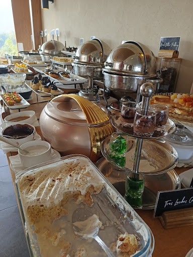 Moving on to the main experience, firstly I would humbly suggest to the management to either provide the guests 's proper welcome drinks or to remove it altogether because it's just embarrassing to be served with mint margarita 'shots'. We were served with soup and prawns on the table. The prawns were delicious and the soup was ok. (Too bad we couldn't get more in the buffet). Coming to the main buffet, I was looking forward to the dragon rolls, beef baos, and the nana chicken. The dragon rolls were sliced extremely thin (picture where you tuck in your belt after putting the pin in) and I could not even taste what was inside of it. I could not get my hands on the beef baos as I tried maybe thrice to get it but was welcomed by an empty chafing dish. It was the same with the Nana chicken mainly except for this one time I saw some left in the dish and they were tiny bits of chicken. Mini Pizza on the menu should be renamed to Microscopic Pizza because of obvious reasons. Channa chatt/ Dahi Baray were presented in single serving bowls on the buffet.