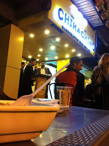 Read moreReview! Place: ChikaChino F7 To boostup the mind with some energy of outdoor, I went to Chickachino. Luckily got the seat this time... Cool and cool evening atmosphere of Islamabad. Trees relying ambiance with twinkling lights hanging on branches, Music is giving its on Tarka in all the scenario, and surrounded by "tar tar ar tar of people" and that "tar tar tar of few of respected ladies is so high that it was overcoming the loud sound of "Sami meri waar men waari men waarian di sami-e". So what can i say,... Started checking menu, This time wanna sweet, at once i stuck between Gujranwala Rasgullah and Lahori Falooda. Being the birth of that side, i love cuisines of Gujranwala and Lahore. So ordered One Lahori Falooda and Chaye(after some time). Finally after some time That gentleman brought Icy Falooda and hot Chaye at te same time. I was like "bhai ye kis ghalti ki saza ha" thora thehr k chaye ni mil sakti. He was genious , he said "sir baad mn garam krwa lijiye ga" Then i focus on Falooda, it took me 10 minutes to understand that this is falooda. first i thought it was "Rerhi wala Gola" jis py red jam e sheery gira hota ha. Then i tick the spoon with it, nd its totalt ice. mtlb wo falooda k milky khoya wala No seen. So pathetic. matlb agr yehe bnana tha to eska naam "K2 Falooda" likh detay baat samaj mn ati. lahore ko Q badnaam kr rhy o. #ghussa agya. No other option believe me k With the help of tea sips, i was eating that pathetic falooda. it was like doctor prescribed me beta falooda 2 chamach subha 2 dopahar 2 shaam. and sonay py suhaga they played the song "Dispacito" and i was interpreting dispacito that time like "BeraGahrakito" and chickachino as "FaloodaChino". By all worst exerpience ends up with pathetic taste. Never ever gonna again on such a tasteless place. (Ronday kam sonay nu) Ambiance- Good (Thanks to islu weathr nd trees) Taste-...