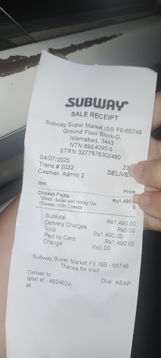 Read moreI'm a regular customer of Subway for years and had a pathetic experience at the School Road Islamabad outlet. The staff at this branch are scammers and con artists and rob the customers. I ordered a foot long teriyaki combo and they overcharged me by saying your order was for 2 six inch combos (that costs more than foot long). They're a group of non professionals and I'd never visit this (or maybe any) branch of Subway...