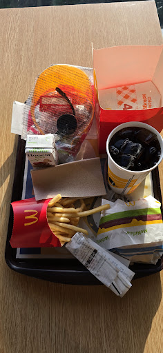 Took a quick trip to McDonald's and ended up hiring the cutest new crew member! 😂👩🍳 Our little one got a Happy Meal with fries, juice, a burger/nuggets, AND the best surprise — a headset & visor toy to role-play as a McDonald's employee. 💛🎧 She took her "job" very seriously... while munching on fries on the side 😂