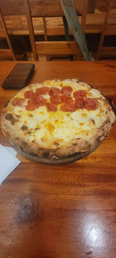 Read moreMy wife and I stopped in for a midweek lunch just after noon. The place was very quiet, no other customers. We were seated promptly by the server who took our order after a fairly leisurely time. Food took more time than expected but it wasn't a crazy long wait. My pesto and pollo pizza was very tasty and a reasonable personal-size 'za. Crust was very good but not as thin as I expected given their claims. My wife had the margherita pizza and she felt it was good but not great. Decor is very simple: light wood and a few posters. Nothing fancy but hey, it's a pizza joint! Can't compare it to other Boquete pizzas but I would say it was worth the price but far from the best pizza...