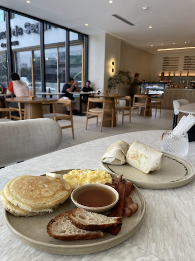 Read morePedi un desayuno panameño que si me gusto, mi esposo un desayuno americano, tocino un poco salado, la tostada francesa bien no muy empalagosa, el croissant regular.. como pedi Matcha ceremonial estaba bien El servicio puede mejorar, el personal no parece feliz y hacian todo porque debían no porque les gustaba atender.. el ambiente bien pero mi mesa no paraba de moverse porque una pata estaba chueca. Fui domingo por lo que creo que no tuve que pagar estacionamiento pero si tuviera que...