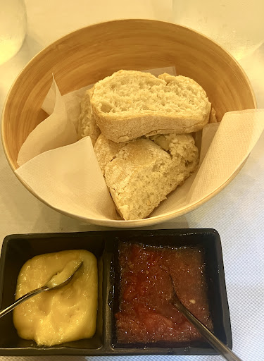 First, we ordered the bread, a small bowl with 2 little dipping dishes, excellent taste. Costs 3 US dollars.