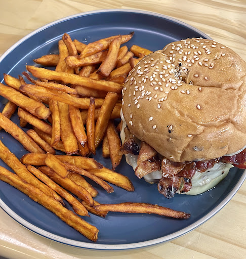This was my second visit to Momo Coffee shop, though it was good on my first visit after trying their hamburger and sweet potato fries this time - a review was required. Recieved a warm welcome from employees and entered in to an open and bright atmosphere - very relaxing. When I saw the picture of the burger in their menu, I knew that's what I wanted - didn't even look at all the ingredients! Delicious patty, a special sauce for sure, cheese, plus. OH MY!!! From the first bite of gooey deliciousness, this sandwich delivered. And the sweet potato fries were a perfect compliment! After the reaction from sending a photo to my spouse, brought this awesome combo home to her and she was impressed also. Return very likely ... And the fruit drinks are fresh...