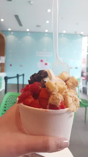 Counter-serve frozen yogurt chain offering many toppings, plus smoothies & shakes in a sleek space.