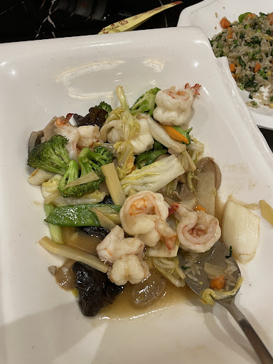 Una noche de fin de semana, nos detuvimos y éramos los únicos clientes visibles. El personal atento tomó nuestro pedido y nuestro pollo con sésamo y miel, arroz frito con verduras y camarones con verduras llegaron sin demora. La comida estaba bien, el pollo estaba bien sazonado pero seco y los camarones con ajo tenían muy poco sabor a ajo. Esperaba más con los precios de estos platos principales, 16 y 28 respectivamente. El salteado de verduras estaba excelente. Cuando solicitamos el descuento de Jubilado en nuestra cuenta, este fue el primer restaurante (en 3 meses) que se negó incluso con nuestras identificaciones temporales de Jubilado. Interesante, sin duda, y seguiré...