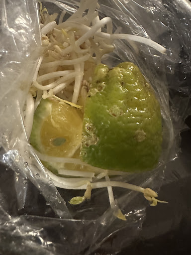 The food was not good and not fresh and not correct. Pho with mariscos was old broth with over cooked shrimp (2) sliced in half to make 4. The sprouts basil and lime was bagged and almost moldy. We found that out upon eating in the hotel. We also ordered spring rolls. I’ll let the pictures explain. They were definitely re-re-cooked and stuffed with mysterious ingredients. The noodles were over cooked as well, likely microwaved.