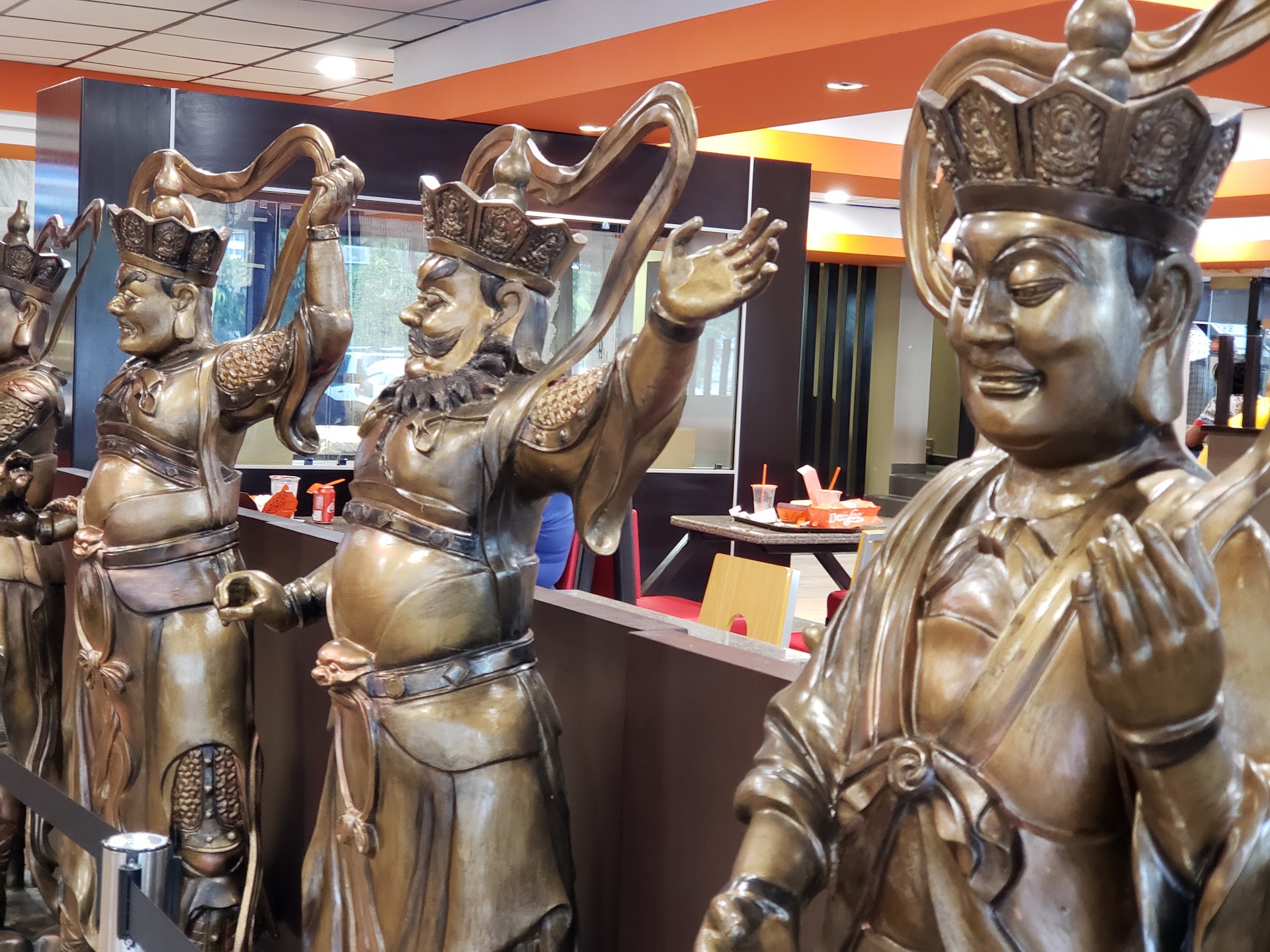 Fast, well-trained service. Great food. Air-conditioned interior with comfortable seats. Ornaments and statues for added effect.