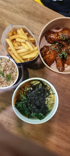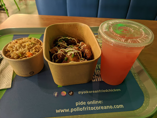 Read moreDesde hace rato tenía muchas ganas de probar esta comida ya que se veia deliciosa en redes. Pedí el combo de alitas Yoi en salsa especial con arroz al wok y té de fresa con jengibre. Las alitas tienen buen sabor y buena cantidad, la salsita está como dulce pero no veo mucha diferencia con las alitas normales que venden otros locales. El arroz estuvo bien pero no es el mejor arroz al wok que he probado y siento que poquito. Lo mejor sin duda es el té, esa combinación de fresa con jengibre picante está genial y combinado con las alitas es una delicia. También probé el desayuno y me encantaron las empanadas de puerco con maní aunque algo pequeñas. Como sugerencia deben mejorar la administración y organización del local: no tenían los precios ni el menú completo a la vista ni a la mano de sus empleados, eso es inadmisible para un segundo local de la franquicia, igual en IG no tienen el menú bien organizado, sin duda la fila de la caja se va a poner lenta porque hay que estar preguntando las...