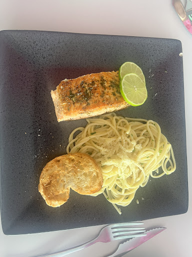 I had an amazing dining experience at Osaka Toscana! The pasta was cooked to perfection—al dente, hot, and full of flavor. The spaghetti had a rich garlicky essence, likely from a delicious blend of garlic, olive oil, butter, and parsley. The salmon was cooked medium and absolutely sabroso, with a squeeze of lime adding just the right touch.