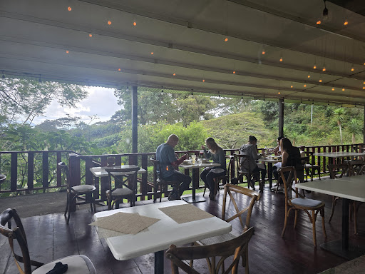 Sin embargo tengo que expresar mi desagrado acerca del muchacho que me atendió (tamaño promedio, cabello negro, color de piel blanca, ese día tenía puesto una camisa manga larga medio celeste y cubrebocas) y me cobro mi comida, ya que después de haber terminado de comer y durante la comida le comentaba muy amablemente que a mi me encantaba el cafe, etc etc.. y intercambiamos algunas palabras (aclaro que el muchacho siempre fue amable) cuando termine de comer le consulte al muchacho si podía subir al restaurante solamente para apreciar la vista de la finca y el muchacho me dijo que si. Al subir estaba prácticamente vacío no habían casi nada de clientes y el muchacho de una vez nos presento al barista del restaurante, a lo que yo le digo “señor cuando te va a costar esto?” Y le pregunte porque obviamente vi que aquí hacían tours de cafe y catas de cafe, a lo que el muchacho me responde “es de cortesía” y esa frase la escucho mi familia entera y el muchacho simplemente se fue y nos dejo con el barista. A lo que voy es que si tu le dices a alguien “es cortesía” no se debería de cobrar absolutamente nada, e inclusive recalcando que ya mi familia y yo habíamos consumido en su cafetería. El barista procede a hacer su cata de cafe, muy amablemente nos trato y nos hablo acerca del cafe y pudimos degustar su rico cafe geysha. Cuando ya nos íbamos resulta que el barista nos trae la cuenta y yo en mi mente quede confundida porque mi familia y yo escuchamos cuando yo le pregunte al muchacho cuanto era el costo de ese servicio y el nos dijo que era cortesía. Con mucho enojo y pena me toco pagar la cuenta ya que el barista hizo un excelente trabajo.