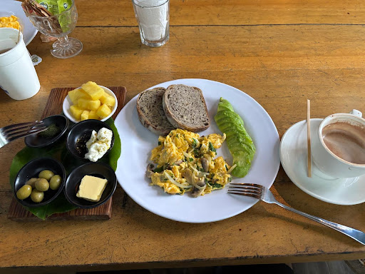 My wife and I stopped here for a cold drink after a hot walk along the beach. The cafe is the perfect oasis, that’s part of a hostel, hidden away at the end of a path through the jungle. It’s such a relaxing spot next to an active pool. The staff friendly, the food is excellent and fairly priced for the quality. Though if you are over 40 you’ll probably feel like you’re throwing the demographics of the place off. We’re in our 70’s and felt very welcomed. It’sa great spot that...