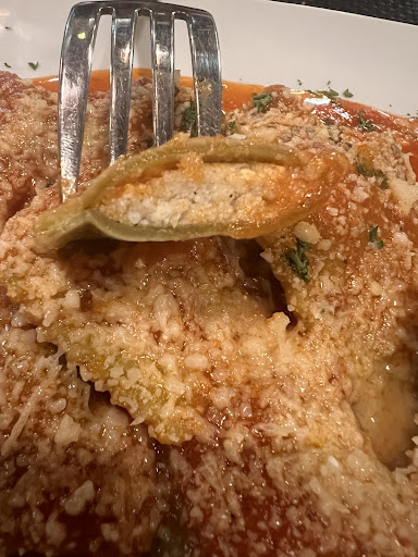 My husband ordered the lasagna and absolutely loved it. I opted for the Fiorentino ravioli, and while it was enjoyable, I felt it didn’t quite live up to traditional Italian standards. Having Italian roots, I’m familiar with truly authentic Italian cuisine, and I’d rate the food a 4.5 out of 10. It’s hard to rate Italian food in America, but I can understand why many people enjoy this place, as it has a lot of charm and the dishes are well-liked by others.