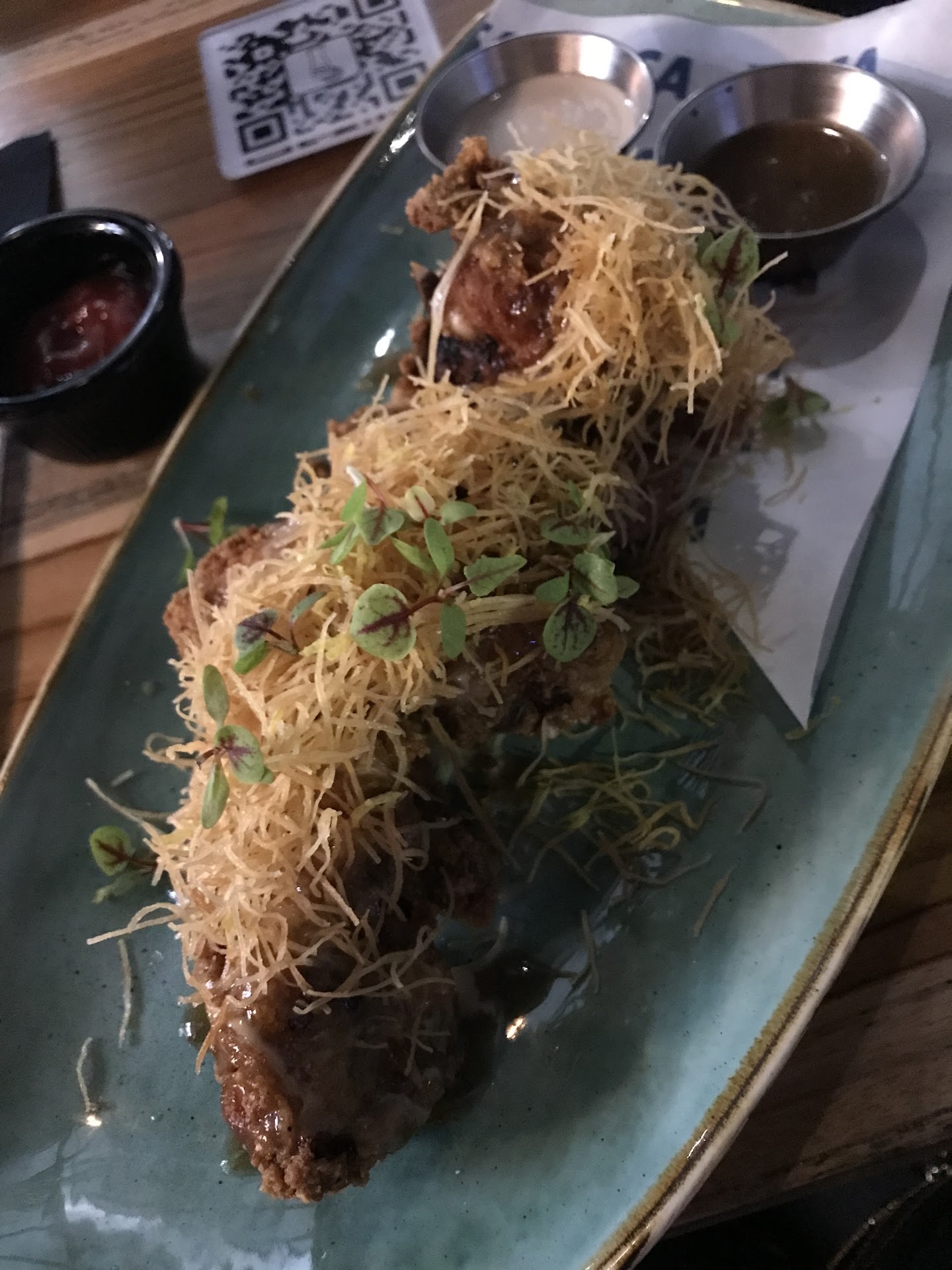 Cuando llegó la comida, a mi amiga y a mí nos trajeron un fried chicken sandwich, que no fue lo que pedimos. Al comentarle al mesero que ese no era el pedido correcto, en vez de asumir el error o disculparse, comenzó a insistir que nosotros nos habíamos equivocado y fue a mostrar en el iPad que eso era lo que estaba anotado. Lo peor fue que dijo que no podía cambiar el pedido porque en cocina se iban a molestar, así que tuvimos que quedarnos con algo que no habíamos pedido. Jamás tuvo intención de cambiarnos el pedido.