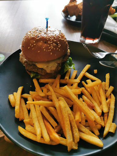 Read moreEs una franquicia famosa por sus buenas hamburguesas y tiene muchas variedades que elegir, para mi gusto el local es algo ruidoso porque reverbera demasiado la música, la cual suelen poner siempre algo elevada. Es un local ubicado en la segunda planta al que se llega por ascensor y escalera mecánica. El restaurante es cuadrado y dispuesto de manera que se pueda ver las televisiones desde cualquier puesto. Mi experiencia de varias ocasiones ha sido buena tanto en atención como en tiempos para servir los platos, sin embargo no me gustó que los empleados, chef y meseros se sienten en las mesas para clientes....