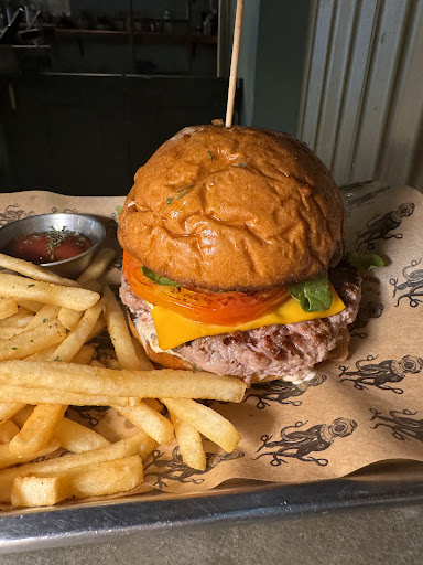 We came for their burger, as it looked amazing in their Instagram pictures. Kudos to their photographer and marketing team! Visually, the burger looked good, except for the patty. It was very thin, barely making an impact on the flavour. We were initially put off by the colour, which was slightly pink and pale, almost like pork patty. The meat had a strange consistency - we ordered medium, but it felt rubbery, as though it wasn't cooked properly. The patty was riddled with tendons and strange chewy bits, making it very unpleasant to chew. There was no rich beef flavour – a real disappointment, and we couldn't even finish it. By the way, take a look at the width of the patty on the outside and inside, the photo clearly shows it. The patty is the foundation of the burger, and even though the brioche bun was soft and fresh, and the sauces worked well together, the low-quality beef patty ruined the whole experience. The fries that came with the burger were cooked okay, but lacked seasoning.