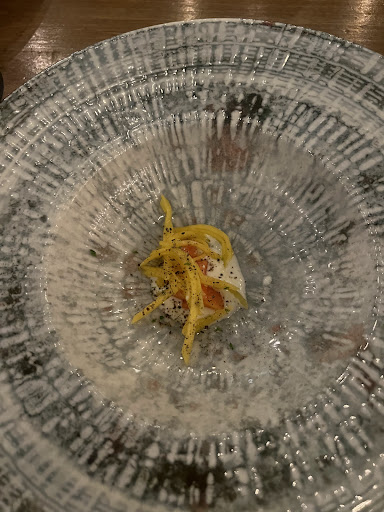 Then came a grilled langostino - once again perfectly cooked - with curry and ginger flavors. This was paired with a sake which didn’t work for me, but my husband enjoyed the combination.