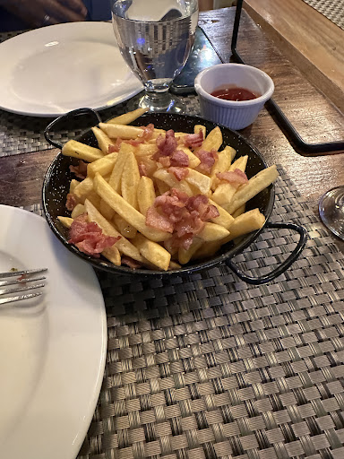 Por mi parte, pedí una amapola. Tampoco tenían. Me dijeron que iban a comprar piñas y que tomaría tiempo. Accedí a pedir algo diferente y elegí las "Papas Trufadas". Estas papas, que cuestan $9.99 según el menú, deberían llevar queso. Cuando llegaron (servidas por otra camarera distinta al que nos atendía inicialmente), estaban sin queso. Tuve que reclamar, y entonces me trajeron el queso aparte.