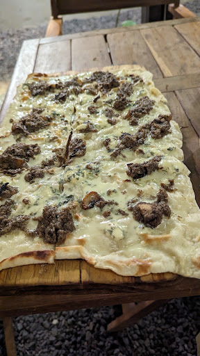 Read moreDisappointed. The Flammkuchen was supposed to have fresh champignons, instead it had blobs of dark grey mush which may have been some kind of mushroom presto, but I'm not sure. I was asked whether I wanted the white wine with ice. Expecting it would be cold I declined. However, the wine was nearly room temperature, somewhere above 25 C. The ice was not detrimental to the flavour of the wine, it sort of improved it. Pity, I was looking forward to my dinner at...