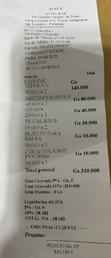 Read moreRecientemente tuve la oportunidad de visitar un local de sushi en San Lorenzo, y debo decir que fue una experiencia bastante interesante. Como uno de los pocos locales de comida oriental en la zona, definitivamente se destaca.