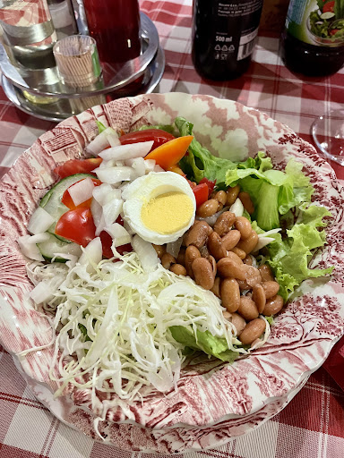 Read moreWe came for dinner and they were busy with seemingly just one server but seated us right away and served us large tasty portions perfect after a day of hiking. We sat outside on the second floor, and it had a homey casual atmosphere. The mixed salad was meal sized (we should have shared instead of each getting one as a starter) with a good variety of fresh veggies, beans, and hard boiled egg and was served with Slovenia’s famous pumpkin oil - yum! I also had the čevapčiči - a ground meat kebab - that came with a side of ajvar - a delicious red pepper condiment - and a rice with stewed veggies on top and fries. This plate was really good too but too large for me to finish after I couldn’t give up the tasty salad. Good spot a bit back from the lake that didn’t have lines like many others at...