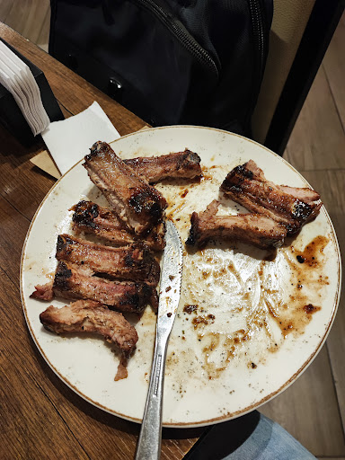 Solicité un corte de Costillas BBQ. Literal era hueso con una salsa (que no sabía a BBQ) al llamar al "supervisor". Mencionó que el corte era así, no era tanto para probar la carne, era para el sabor... 😅 Es decir que si pagas un corte de 60 soles, solo espera saborear hueso, ya que según el supervisor así es el corte. La primera vez que voy a dicho establecimiento, honestamente es el peor lugar en el que he ido a comer algún corte de carne. Frente al supervisor le mostré la carne que se extraía de su corte... Y honestamente,. no exagero al decir que si rasgaba todos los huesos no iba a sacar más de 50 gramos de carne. Lo mejor es su respuesta del supervisor... "Que él tenía experiencia y ese corte no era tanto para degustar la carne, principalmente era para saborear el sabor del BBQ, que honestamente, fue el peor sabor a BBQ que he probado". Las fotos que les coloco es el corte sin haber extraído carne, literal así era el corte, solo hueso cubierto con una salsa, que ellos decían era BBQ. Lo único que resaltó es la atención de Sergio, la persona que nos atendió. Muy buen servicio, pero lamentablemente en un mal lugar. Y coloco 3 estrellas en ese ítem, ya que al supervisor no solo le faltó tacto, también criterio para responder y manejar la situación y cuándo le evidencie que efectivamente su corte era solo hueso, no tuvo mayor comentario que el corte no era tanto para la carne, sólo...