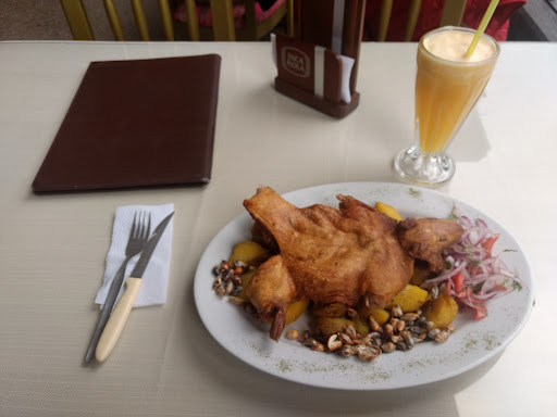 CONTRA: No me pareció malo al comparación de otros que he probado, pero sin duda no creo que sea su fuerte las carnes, sobre todo la de Cuy, pudo haber sido mejor. Hasta donde tengo entendido son mejores en cuanto a desayunos. El servicio en general en muchos restaurantes me parece lento entre 30 min a 1 h. Que fue lo que demoró aprox. Hubiese querido al menos esperar con mi jugo de Papaya Arequipeña aún mejor. Con agua o un refresco de cortesía le daría un toque diferente.